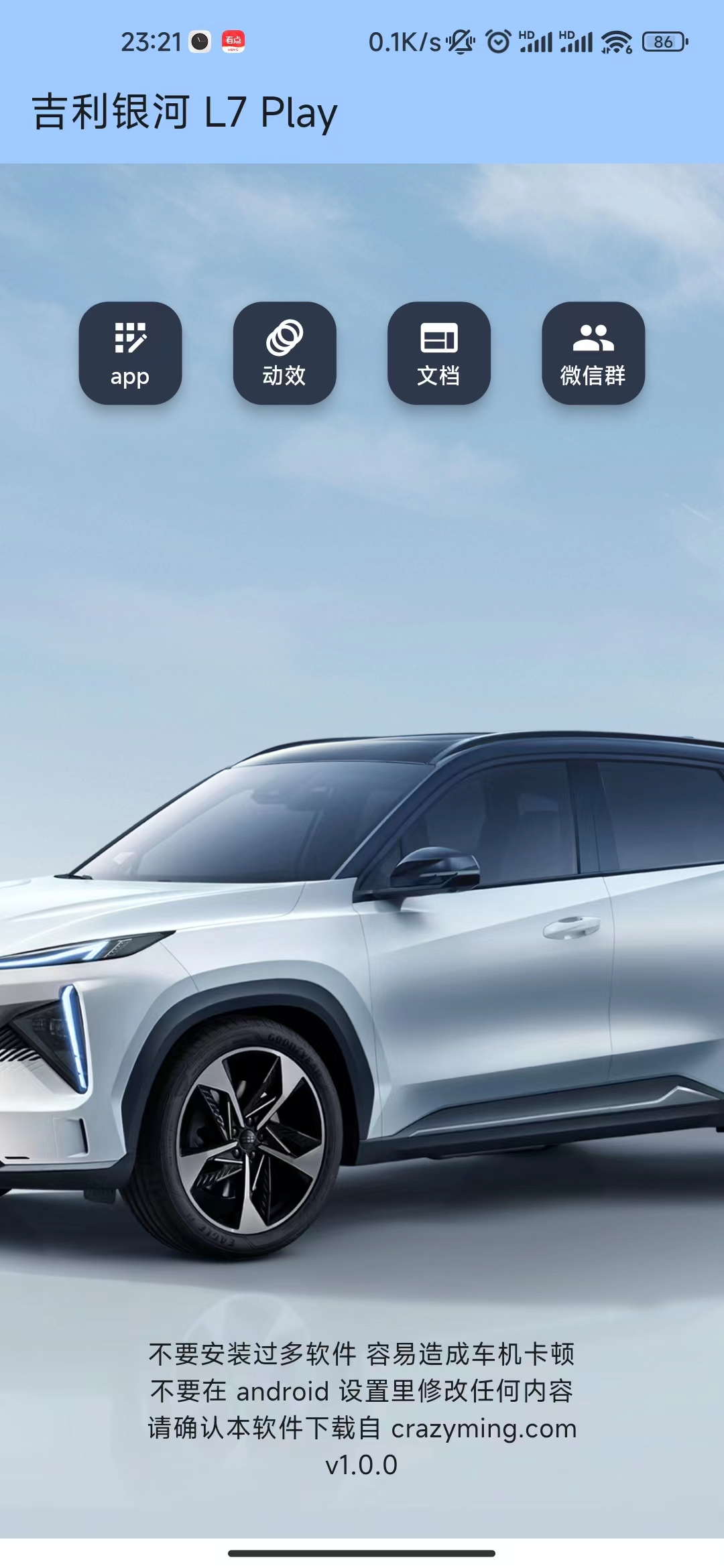 吉利银河l7开启调试模式,安装第三方应用