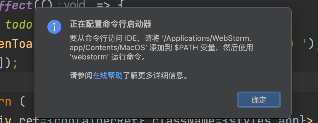 在终端中使用 webstorm . 的命令来打开当前目录中的项目,类似于 VS Code 的 code .。